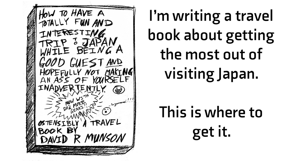 I'm writing a travel book all about how to have a better visit to Japan. Part philosophy, part planning strategy, part practical tips.